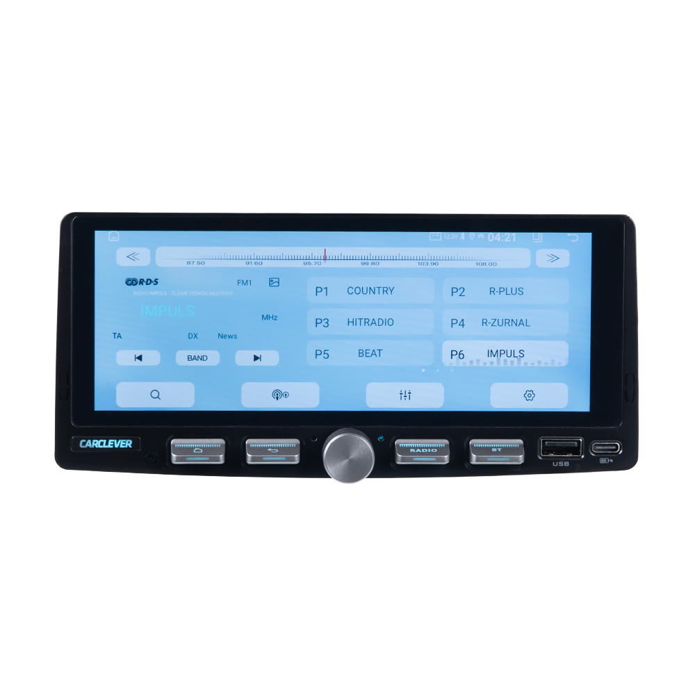 1DIN multimediální autorádio s operačním softwarem Android, Wi-Fi, GPS, Bluetooth, CarPlay / Android Auto.