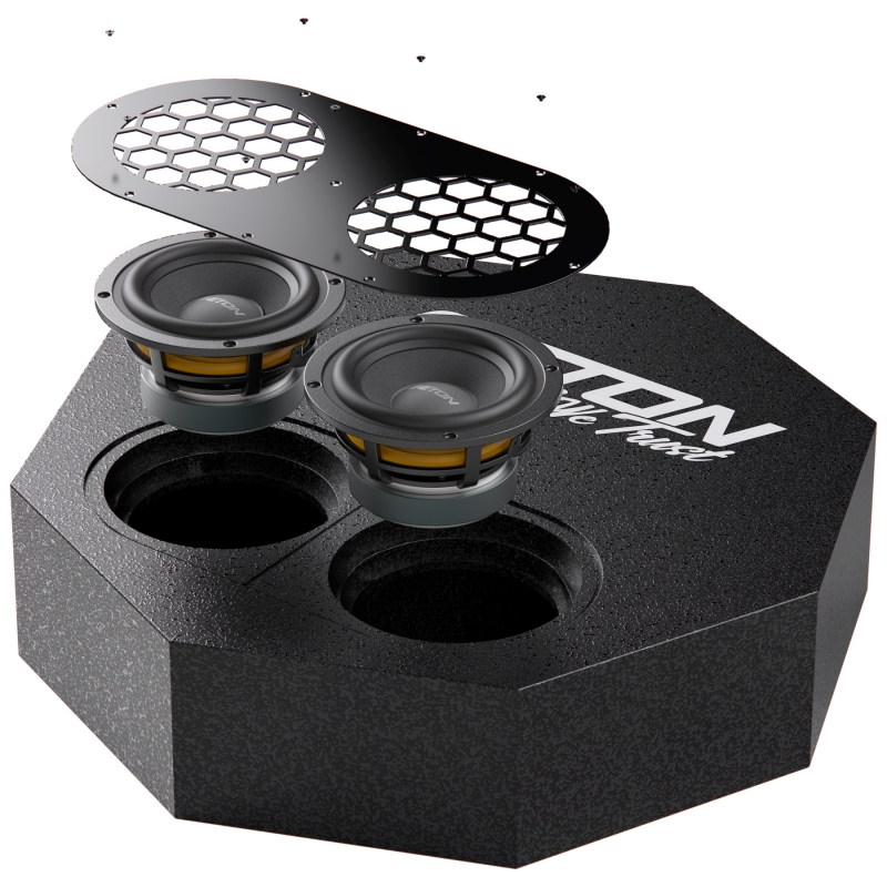 Subwoofer lze díky masivní konstrukci a montážnímu materiálu umístit do většiny prostorů pro rezervní kolo. Díky tomu je možné subwoofer instalovat bez ztráty prostoru v kufru a skrytě.