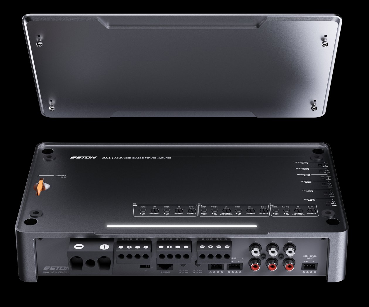 ETON MA6 je 6kanálový autozesilovač navržený pro náročné zvukové konfigurace v autech, ideální pro řízení více reproduktorů bez kompromisů ve výkonu a kvalitě zvuku. Díky pokročilé Class-D technologii dosahuje vysoké účinnosti s nízkým zkreslením, vysokým poměrem signálu k šumu a kompaktní konstrukcí, která usnadňuje instalaci.