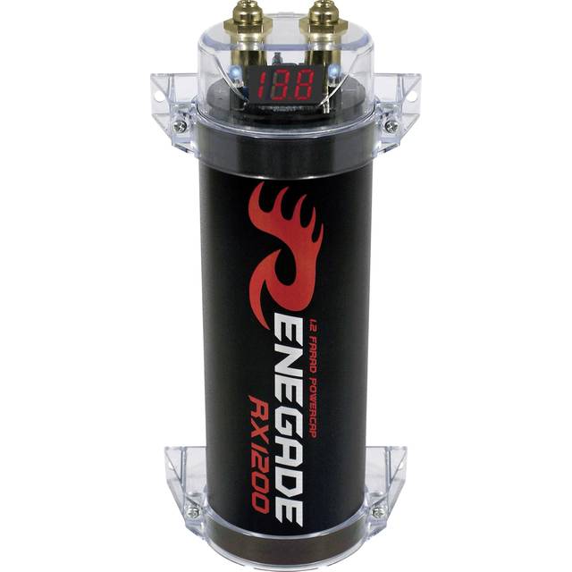Renegade RX1200 je praktický autohifi kapacitor s kapacitou 1,2 Faradu, určený pro stabilizaci napětí v car audio systémech s vyšším výkonem. Slouží jako rychlý zásobník energie, který pomáhá vyrovnávat napěťové špičky při náhlých nárocích zesilovače na proud.