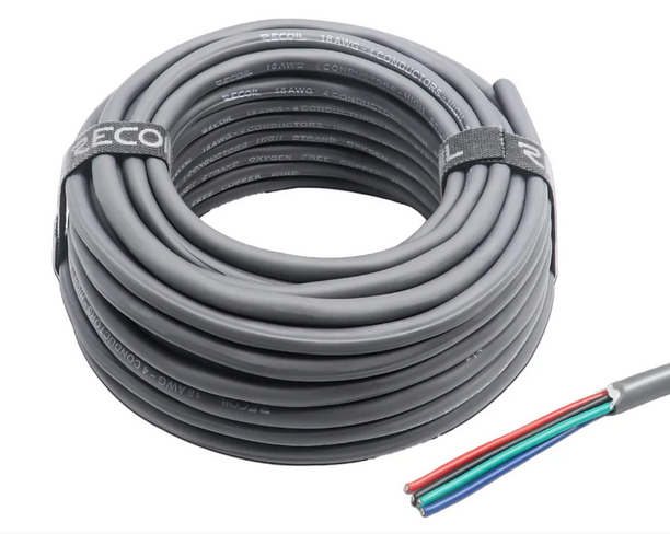 Univerzální 4 žilový kabel (červený, zelený, modrý, černý) o délce 30,5 m je ideální pro RGB LED instalace, napájecí nebo reproduktorové