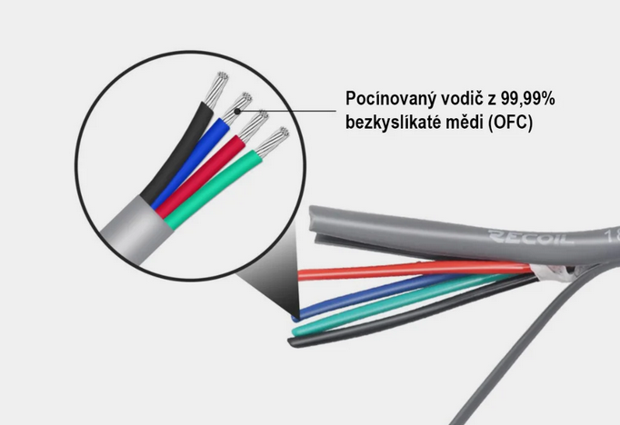 • Ideální pro RGB LED osvětlení nebo reproduktorové kabely
