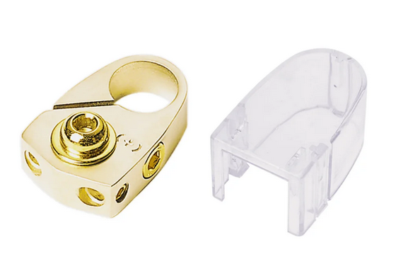 Bateriová svorka + pól zlacená s krytem - pro vodiče 2 x 10 mm2