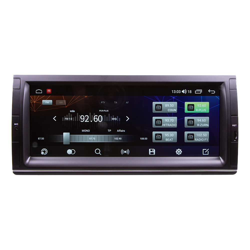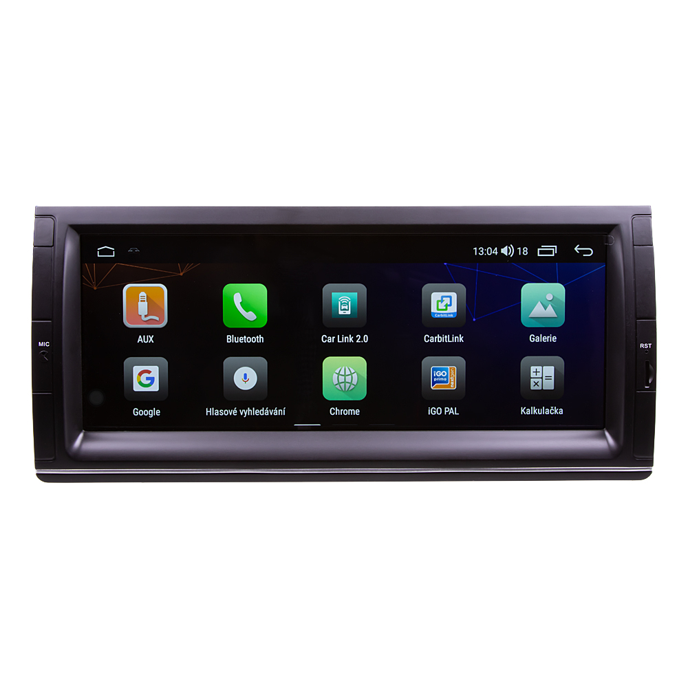 Multimediální autorádio v OEM tvaru BMW s operačním softwarem Android, Wi-Fi, GPS, Bluetooth, CarPlay, Mirror link, 4G.