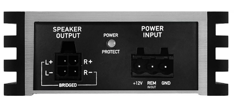 Kompaktní rozměry zesilovače (cca 90 × 35 × 70 mm) ho činí ideálním pro instalaci i na těsných místech pod sedadlem nebo za rádiem bez zbytečných ústupků v výkonu.