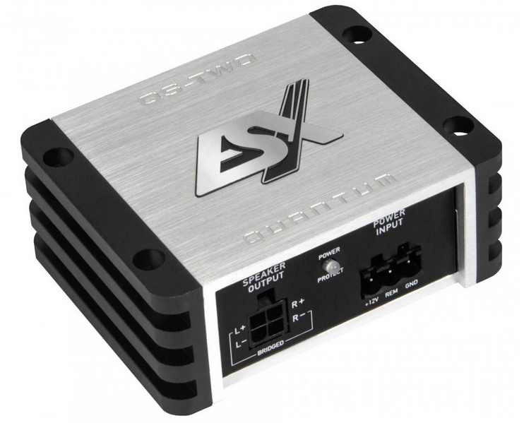 ESX QS‑TWO ISO je 2kanálový digitální autozesilovač třídy D, který v kompaktním provedení přináší výrazné zvýšení výkonu oproti továrním autorádiím a zároveň velmi jednoduchou instalaci díky ISO Plug+Play kabeláži.