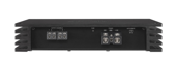 Zesilovač poskytuje 2 × 280 W RMS při 4 Ω a 2 × 490 W RMS při 2 Ω, což zajišťuje silný výkon pro reproduktory a možnost využití v náročnějších audio systémech. Vestavěné aktivní výhybky HPF/LPF/BPF umožňují přesné nastavení frekvenčních pásem pro reproduktory i subwoofery.
