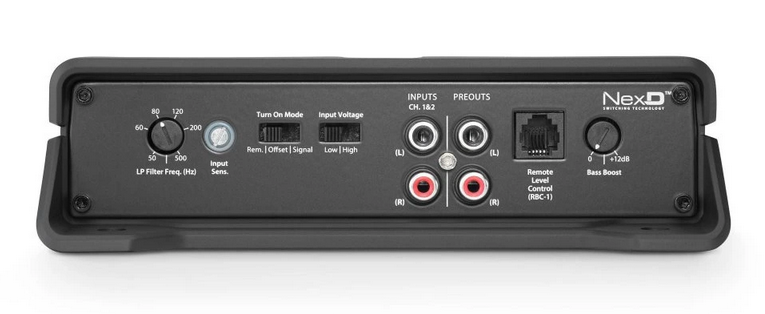 Zesilovač dosahuje 600 W RMS při 4 Ω a 1000 W RMS při 2 Ω – což jej předurčuje pro střední až silné subwoofery. Vestavěný variabilní dolní propustní filtr (50 – 500 Hz) umožňuje přesné nastavení basového pásma, zatímco bass boost (0 – 12 dB) přidá hloubku a razanci nízkým tónům.