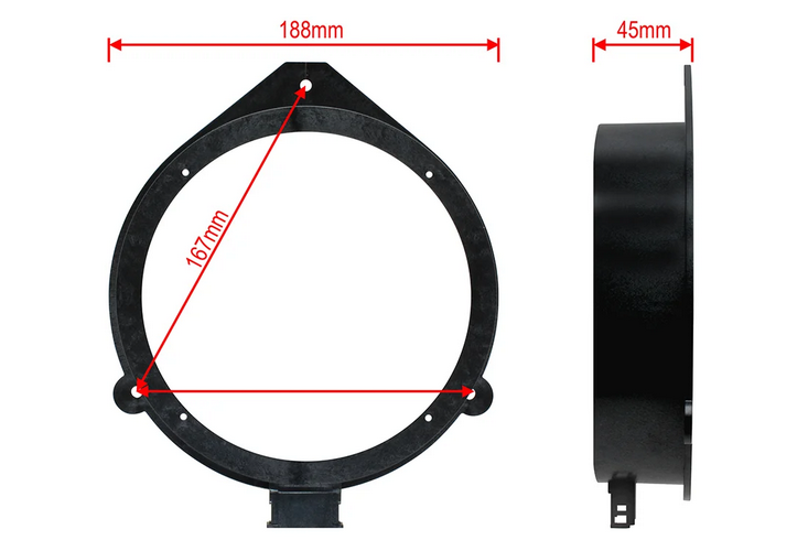 * - Polyamid PA6 GF20 - vysoce kvalitní materiál s obsahem 20% skelného vlákna. Tento materiál jim dodává vyjímečné vlastnosti, zejména zvýšenou pevnost, tuhost, nízkou rezonanci, odolnost proti UV záření a působení chemikálií. Reproduktory upevněné pomocí těchto adaptérů mají vynikající akustické vlastnosti plně srovnatelné s adaptéry vyrobené z MDF.