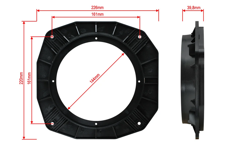 * - Polyamid PA6 GF20 - vysoce kvalitní materiál s obsahem 20% skelného vlákna. Tento materiál jim dodává vyjímečné vlastnosti, zejména zvýšenou pevnost, tuhost, nízkou rezonanci, odolnost proti UV záření a působení chemikálií. Reproduktory upevněné pomocí těchto adaptérů mají vynikající akustické vlastnosti plně srovnatelné s adaptéry vyrobené z MDF.